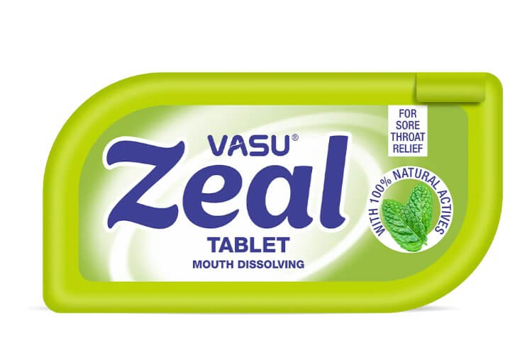 Zeal Tablet is a fast-acting, mouth-dissolving herbal formulation designed to provide relief from cough, soothe throat irritation and act as a natural mouth freshener. Its synergistic blend of time-tested Ayurvedic ingredients delivers both therapeutic and refreshing effects, making it ideal for on-the-go use.