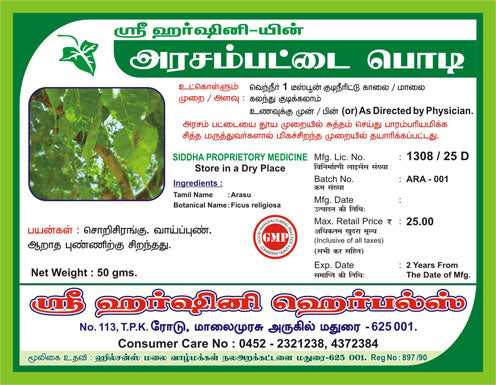 Tamil: Arasam Pattai (அரசம் பட்டை)